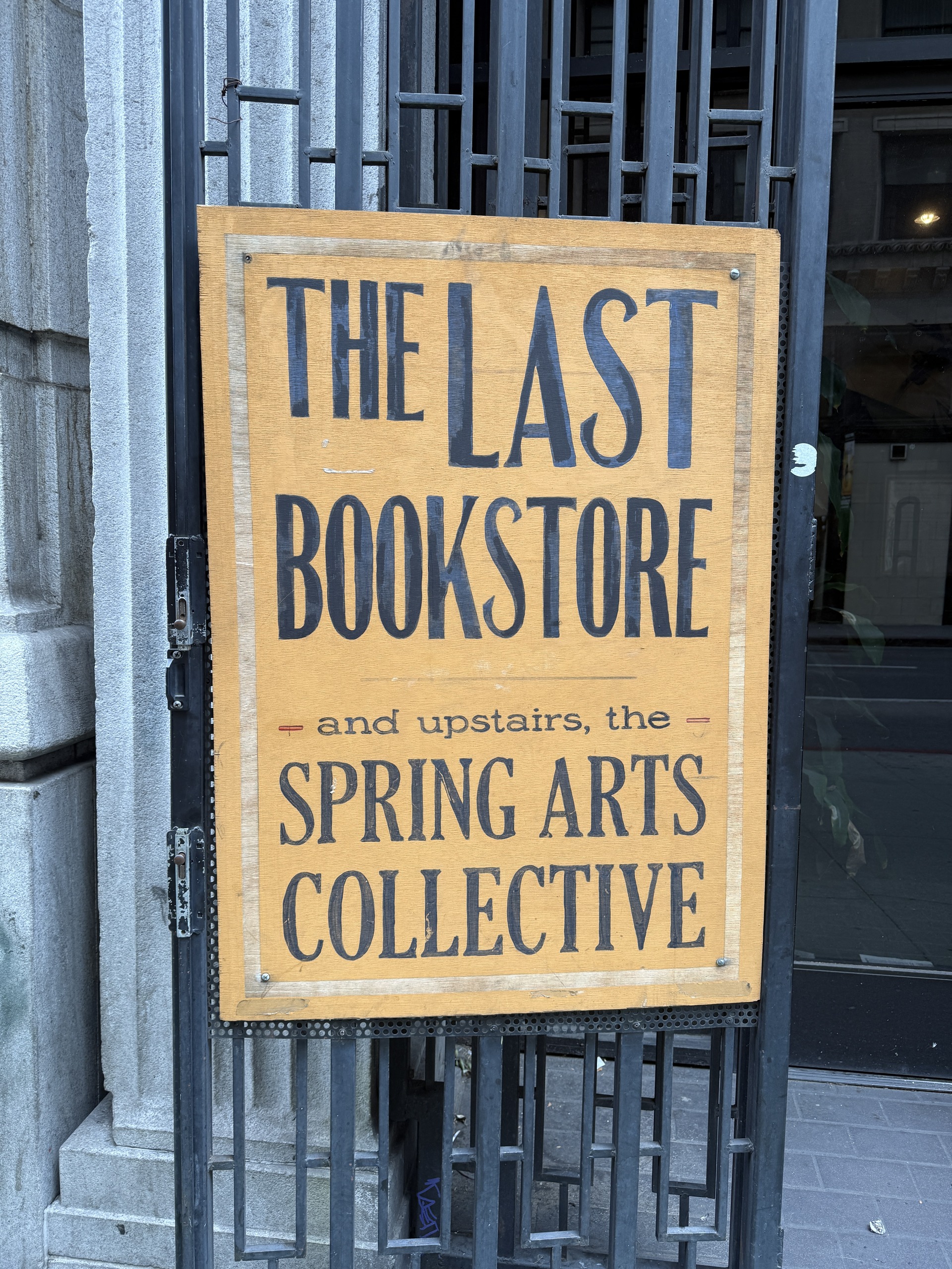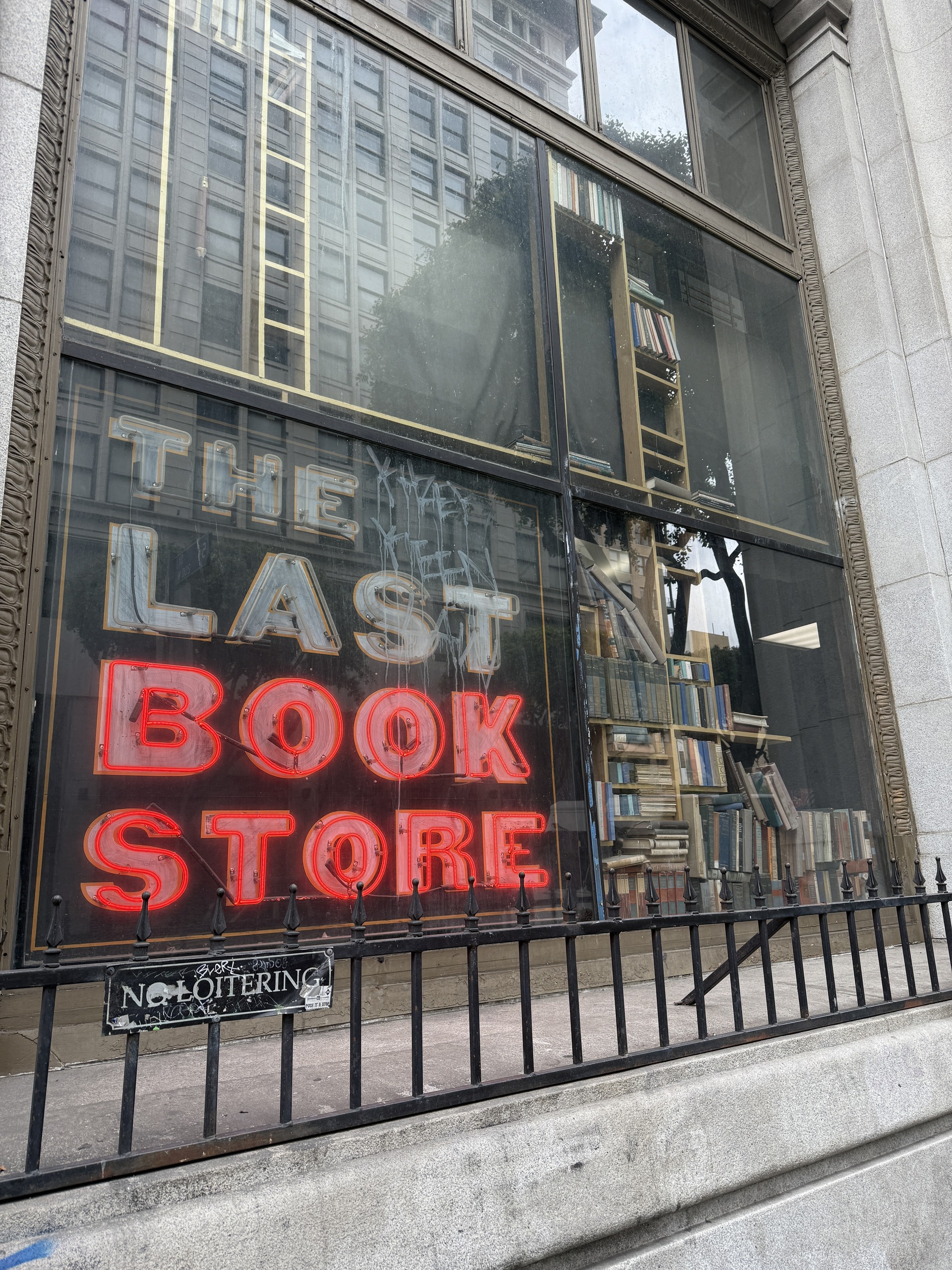 Recently, I visited two of LA’s beloved bookstores: The Last Bookstore and Skylight Books. Walking into The Last Bookstore felt like stepping into a storybook itself — towering shelves, secret nooks, and walls made of old books created a world that was both magical and overwhelming in the best way. It wasn’t just about finding a book to buy; it was about getting lost in possibility.